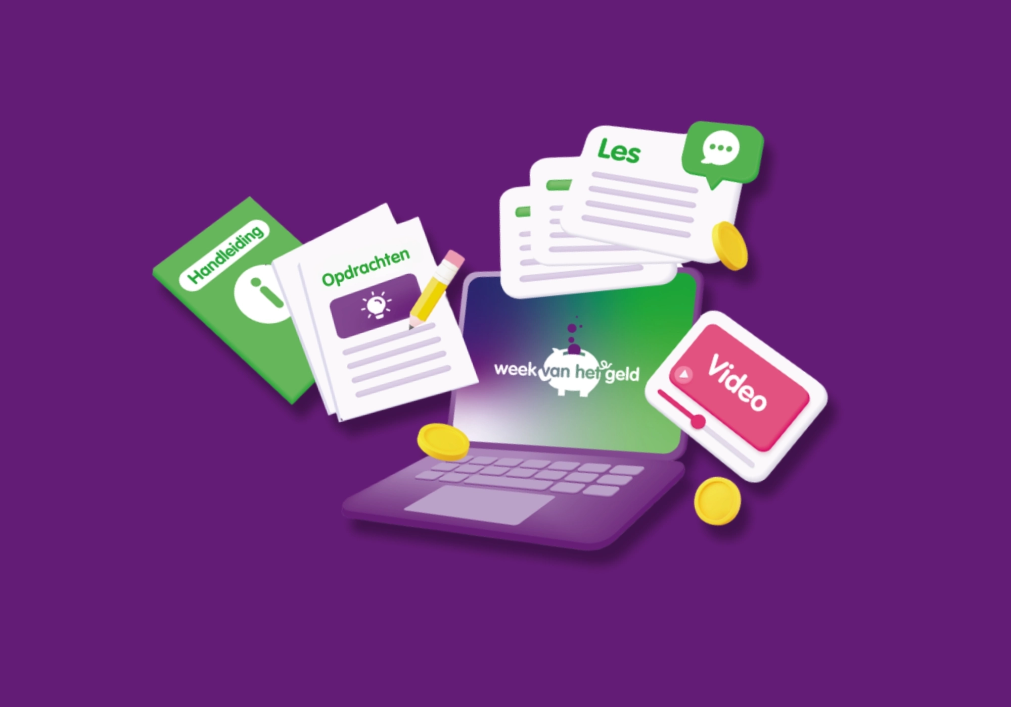 Geen probleem! We hebben een vereenvoudigde versie van de les ook online staan. Deze online lessen kun je echter niet zelf aanpassen en bevatten geen animaties, maar staan nog steeds vol leuke video's en interessante lesstof om aandacht te geven aan het thema van de Week van het geld!